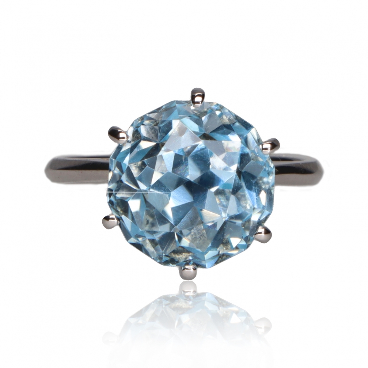 L’anello Cairo porta una meravigliosa gemma di Topazio azzurro di circa 10 carati tagliata come un antico e famoso diamante (Cairo Star Cut).