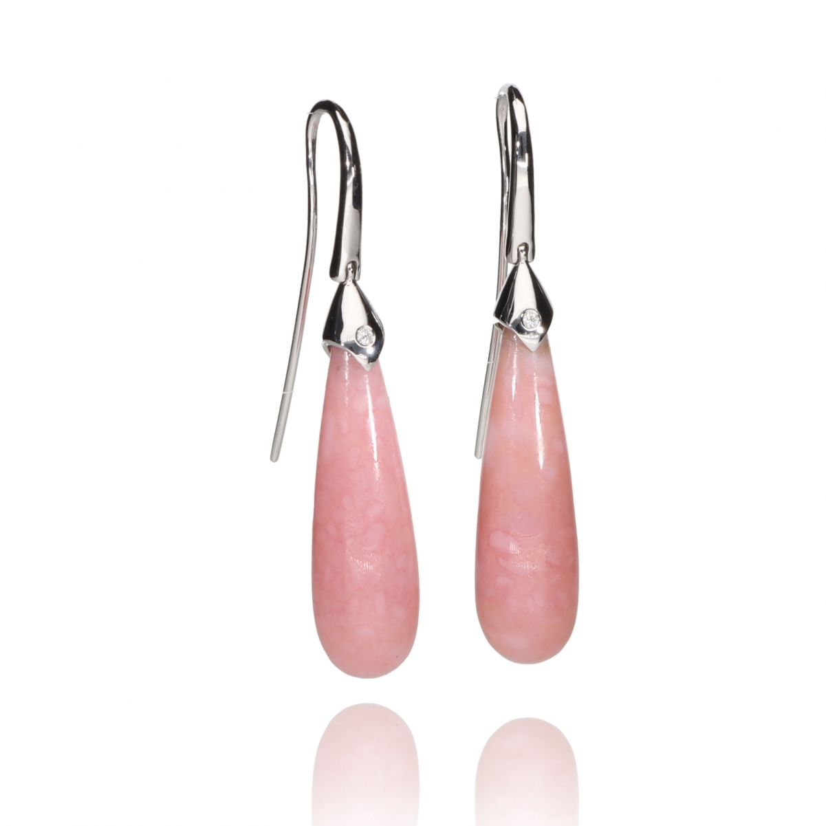Lineari, essenziali, eleganti, questi orecchini in Opale rosa addolciscono e nobilitano il viso. Aggraziati nella loro forma allungata e arrotondata sono di raffinata semplicità.