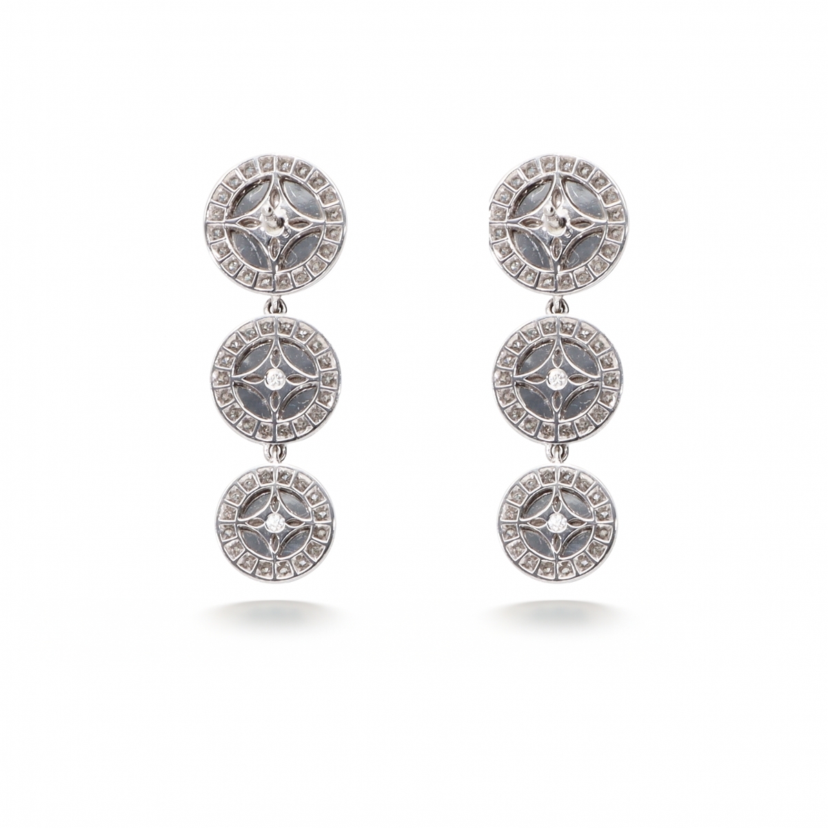 La ricercatezza del gioiello è visibile anche sul retro, che vede la presenza di diamanti nei centri e un disegno geometrico reiterato.
