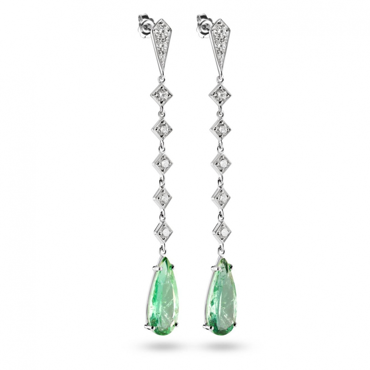 La forma a goccia allungata di queste introvabili gemme di Tormalina verde richiamano una cascata di favolosi diamanti, che dona eleganza alla donna che le indossa. Un oggetto prezioso per una serata molto speciale!